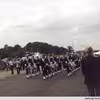 Spejderoptog med musik og faner.