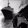 Rutebåden Skipper Clement forhales fra den midlertidig anløbsplads.