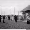 Kolonihavehus, med en gruppe ukendte personer.