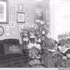 Stueinteriør, fru Carlsen, Ved Stranden 3, omgivet af blomster.