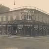 Bryggergade 6 -8, Hjørring, med købmand Morilds forretning og frugt- og grøntforretningen Karse.