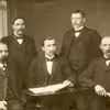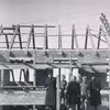 Hjørring, rejsegilde ved præsteboligen. På stilladset formodentlig præstefamilien. St. Kirkestræde 15.