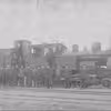 Jernbanearbejdere ved arbejdstog under byggeriet af Hjørring-Løkken-Aabybro-banen. På trinbrættet mellem lokomotiv og vogn : Niels Peter Christensen.