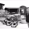 Kurt Christensen står med model af nye hal til Hjørring Ny Tømmerhal på Odinsvej ( hallen blev nedrevet i forbindelse med HNT`s flytning til Farøvej og senere genopført hos Sejlstrup Entreprenørforretning i Hundelev)