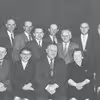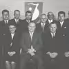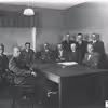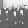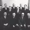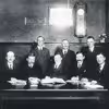 Siddende fra venstre: Peter Beck, Søren Olesen (forstander, indenrigsminister), Otto Larsen, Peter Jepsen, Ingeniør Jensen, Hjalmar Pedersen (tømrer og bibliotekar), Niels Larsen, Peter Melgaard Pedersen (kæmner), Martin Tophøj (fisker).