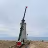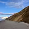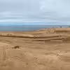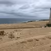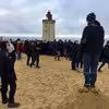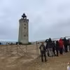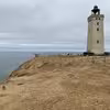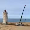 Flytning af Rubjerg Knude Fyr i 2019. Fyret set fra stranden dagen inden flytningen. Efter flytningen ses fyret ikke fra stranden mere.