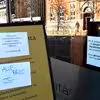 Café La Bonta, Østergade 18, Hjørring. Foranstaltninger og skiltning under Corona-krisen (Covid-19).