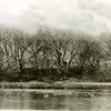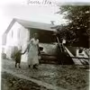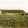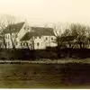 Mygdal " Odden Møllegaard " med køer og mand med hest foran.