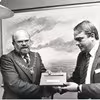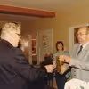 Torben Østerby fra byggesocietetet overrækker "Det Gyldne Søm" til borgmester Poul S. Poulsen