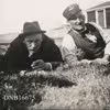 Stationsforstander Jakob Ørtoft og Ejnar Christensen, Dyrehaven, Tolne, ved Jelstrup station.
