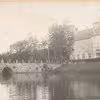 Volstrup, landskab ved Volstrup kirke. Broen over Sæby å. t.h. Volstrup kirke med stensat kirkegårdsdige.