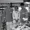Slagter Winther, Hirtshals, udvider sin butik. F.v.: Købmand Leo Larsen, Johny Nielsen, Anita Winther og slagtermester Poul Winther.