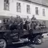 Vagthold på vej til afløsning i P.S.Pedersens bil foran Afhotellet i Fjerritslev (Gran Hotel)