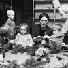 Juledag. Familien samlet omkring frokostbordet.