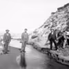 4 herre med stok og hund ved Bækrenden i Lønstrup.