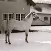 Slagter Henrik Svendsen, Faxe Ladeplads, siddende på sin hvide hest.