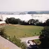 Udsigt over Juuls frugtplantage fra brandstationens tårn mod Gl. By og Vandtårnet samt husene omkring Stengårdsvej i Haslev.