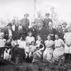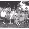 Gruppe samlet i haven bag lærerboligerne i Øster Hornum
