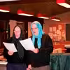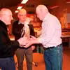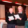 Formand for Gærum lokalhistoriske Forening og Arkiv, Carl Chr. Olsen takker Svend Aage Sørensen og Ole Kaj Jensen for revyunderholdning, april 2012.