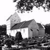 Postkort: Åsted kirke og omliggende huse vist fra 2 vinkler.