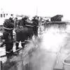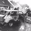 Trafikuheld på Klitgårdsvej ved Barfredsvej. Udbrændt Fiat 128 og Frederikshavn Brandvæsen i gang med slukning.
