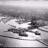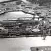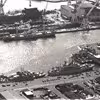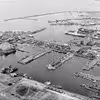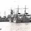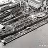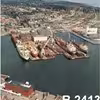 Luftfoto af flådebesøg. Skibene ligger ved Nordre kaj, i baggrunden ses Frederikshavn Værft nu Danyard.