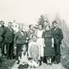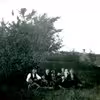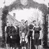 En gruppe mennesker siddende udenfor Groben, Groben 18, Vester Hassing