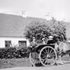 Grobens ejer Peter Nielsen med frue og gæst i jumbe foran ejendommen Groben, Groben 18, Vester Hassing.