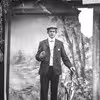 Ukendt ung mand med cerut i hånden i fotografens atelier.