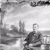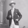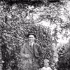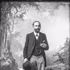 Herre med cerut og butterfly siddende på birkebænk i fotografens atelier.