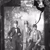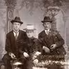 Tre unge mænd med bowlerhat og cerut i et fotografisk atelier.