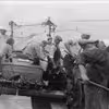 Fiskere fra Hals, fotograferet blandt hyttefade på Hals Havn.Til højre Christian Hansen (1920 - 1989), til venstre Frode Olsen (1926 - 1988?)