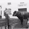 Mand med en tyr på en gårdsplads i Ulsted.