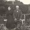Billede af Christian Mouritsen og frue (hendes navn kendes ikke), på en bænk i haven bag deres Tøffel og