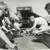 Børn med kane ved ejendommen Ingers Minde