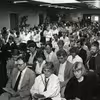 Fra et møde på Hastrupskolen omungdomsarbejdsløshed, hvor blandt andet Ritt Bjerregaard var taler. Enkelte personer er identificerede. Se navneliste i kuverten.