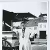 Pølsemand Ib Hansen foran sin pølsevogn på Køge Torv.
