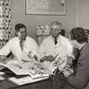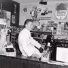 Brugsuddeler Wagner Sigaard og kommis Jens Larsen i butikken i Lille Skensved Brugsforening