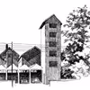 Glostrup Brandstation: tårnet. Bryggergårdsvej øverst til venstre.
