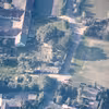 Luftfoto af Herstedvester landsby med smedjen, Brugsen (tidl. Rytterskolen) og den gamle materielgård, efter 1957.