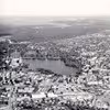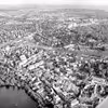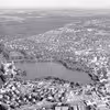Luftfoto af Teglgårdssøen, Frederiksborg statsskole og Byskolen med erhvervsområde på den anden side af Carlsbergvej.