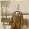 Fragtmand Jens P. Petersen, Vejleby, i døren ved sit hus