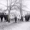 Annie og Kurt Larsens skole- og familiebilleder fra Tommerup. Elever leger foran Kivsmose skole.