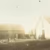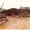 Kridttegning forestillende Karsholte Savværk umiddelbart før nedrivningen i 1991