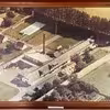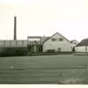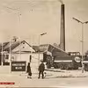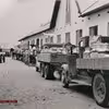 Lastvogne og hestevogne kommer med mælk til mejeriet. Den ene bil har gasgenerator