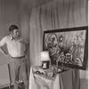 Udstilling i Sparekassen SDS med Merry Sørensen billeder. På billedet ses bankbestyrer Karl Måholm.