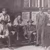 Chauffører ved Middelfart Bilvagt, Algade 33, ca. 1933. Siddende på trappen midt i ses Søren Kristiansen