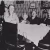 Ved bordet sidder Elfride Andersen med sin datter Inger på skødet. Til venstre er Laura Andersen, Elfrides mor.