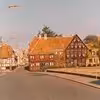 Brogade mod syd fra nr.10 til nr.6 set fra frilagt kirkehjørne med sit trafikskilt "Odense 46"