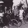 Sigrid Sophie Hansen med venner og deres cykler på gårdspladsen ved hendes forældres gård i Vejlby Fed.